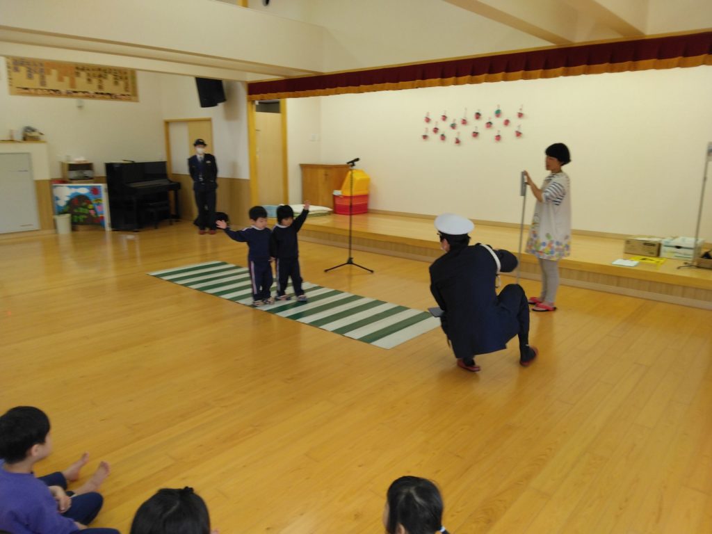 制服姿の警察の方は凛々しく見えて、子どもたちはとても緊張をしてました。