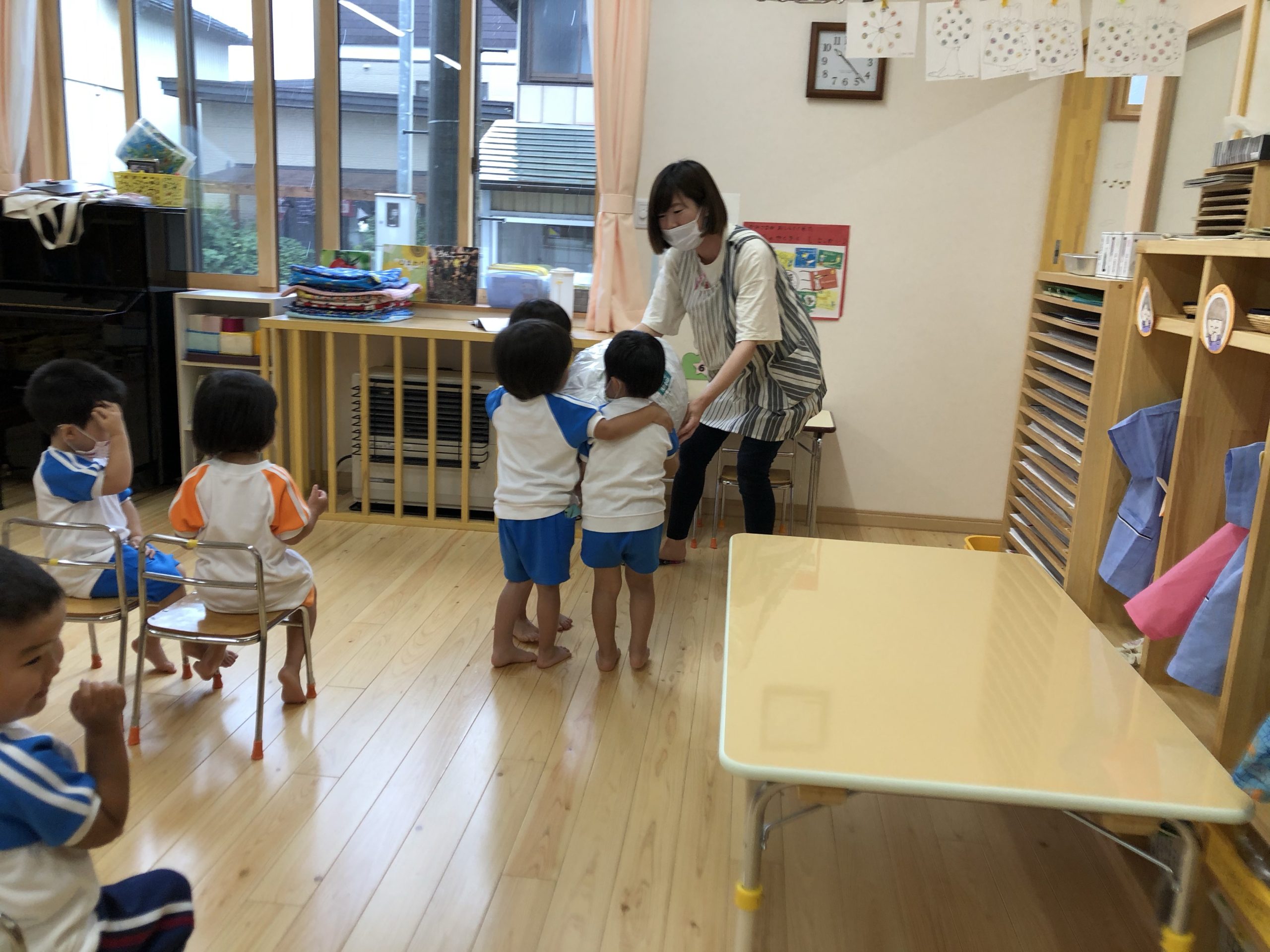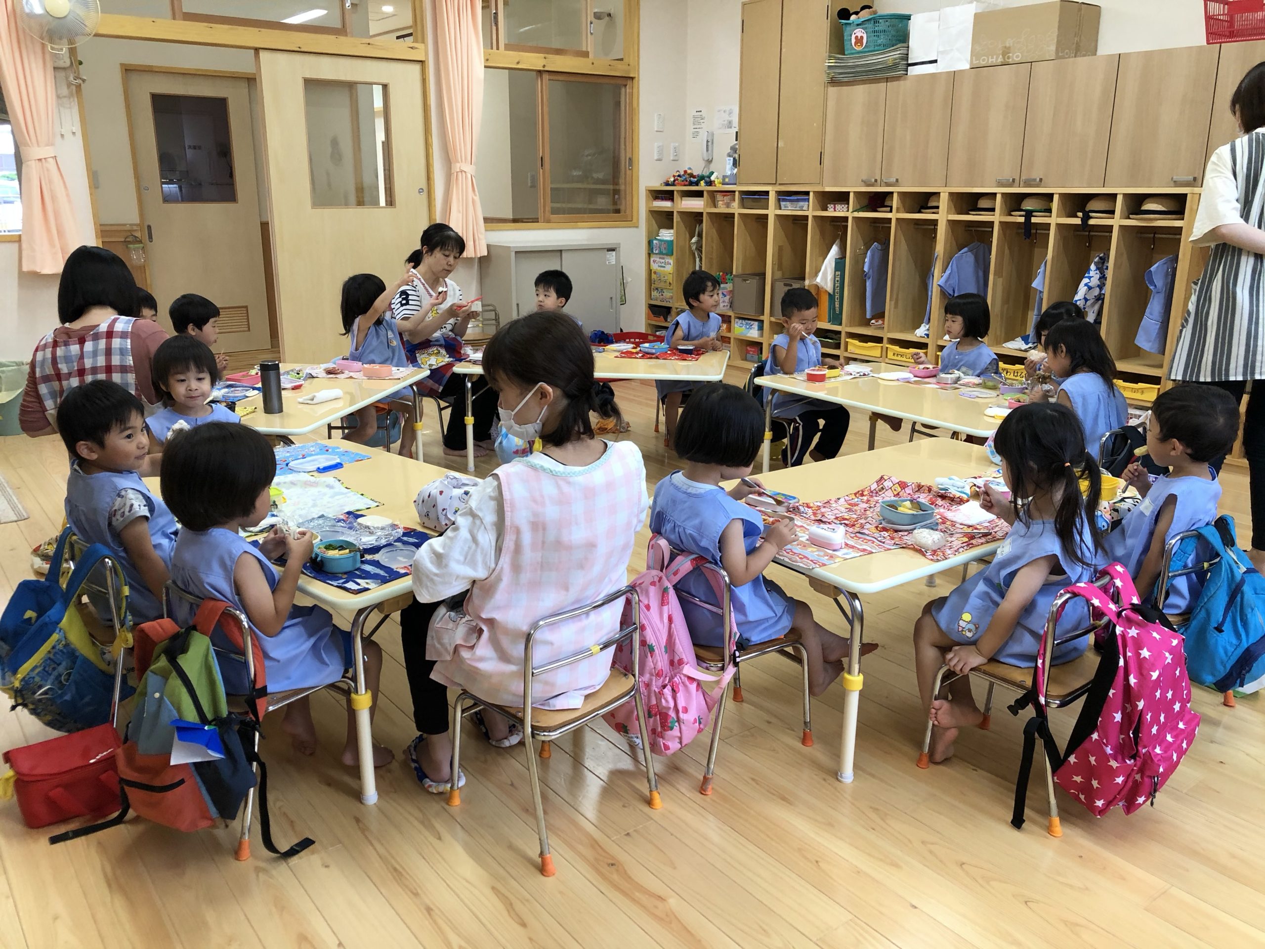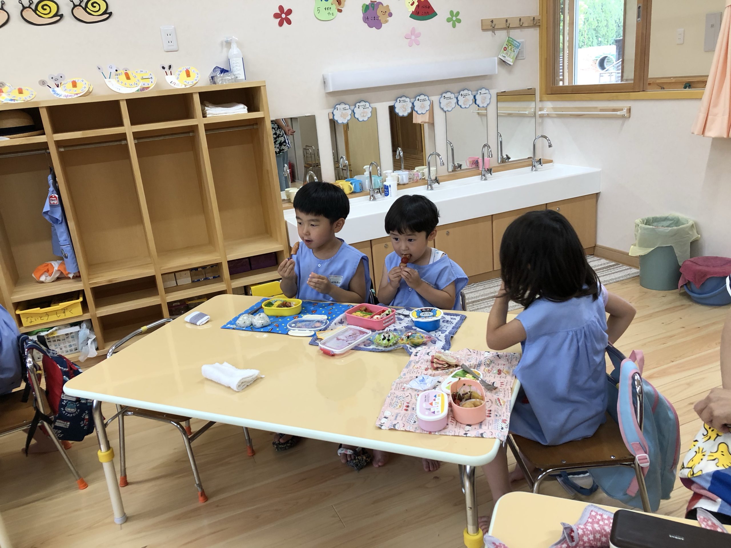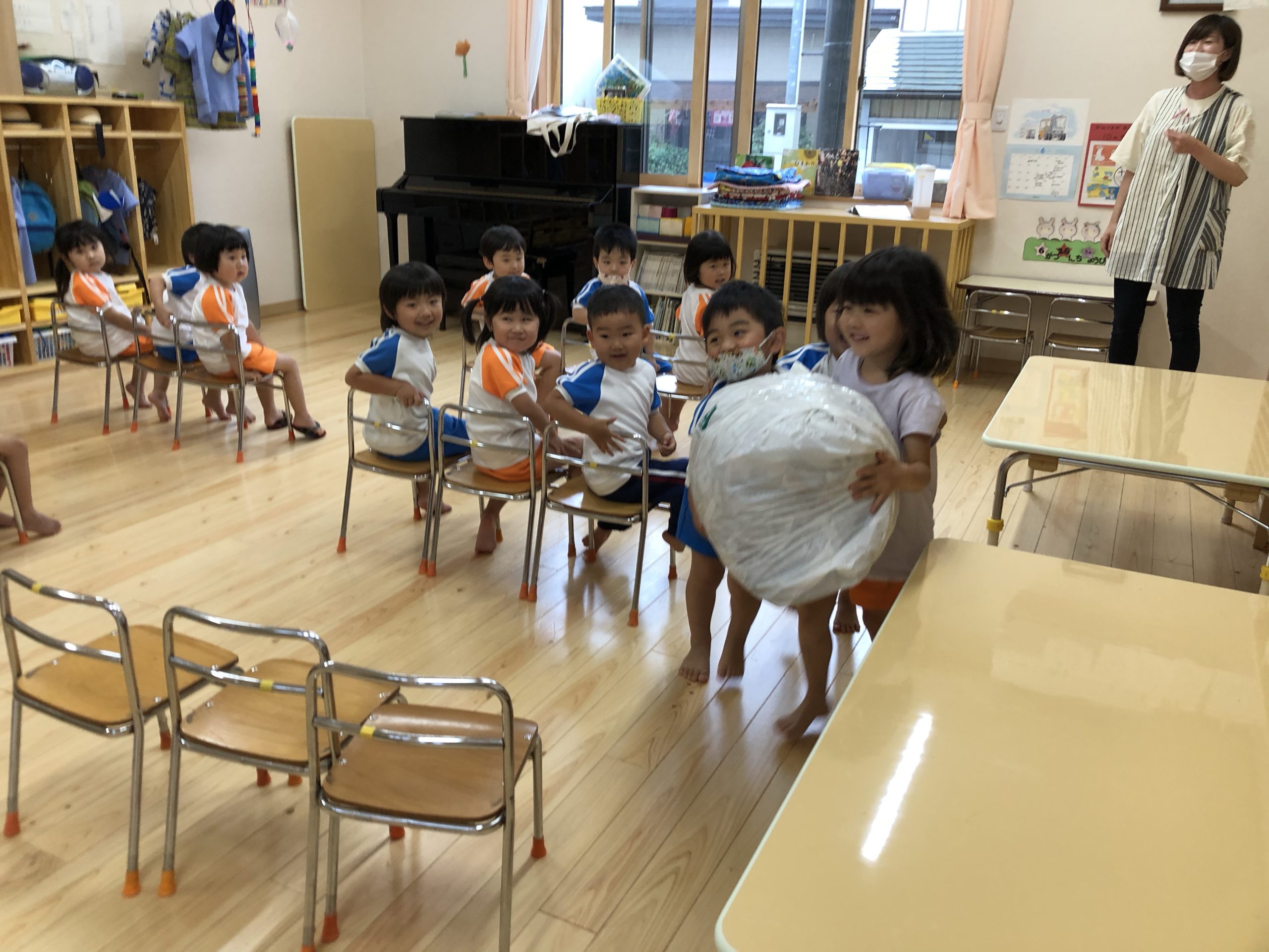 引越し遊びの後は 2020.06.26 今日、たんぽぽ組には大きな荷物がありました。 その荷物を3人組になって落とさないように運ぶという楽しい遊びをしていました!! その後は楽しみにしていたお弁当です!!
