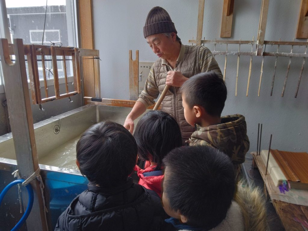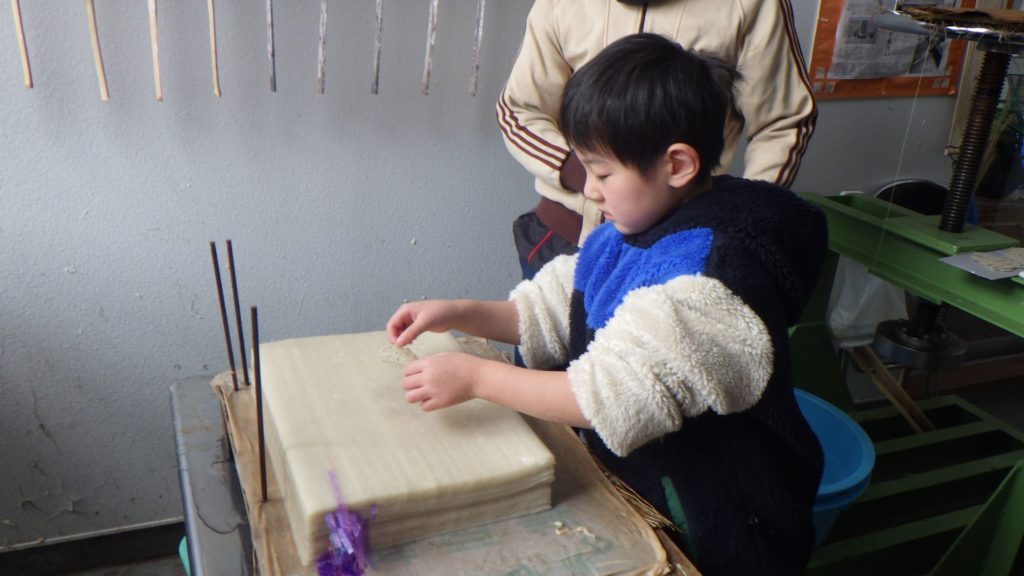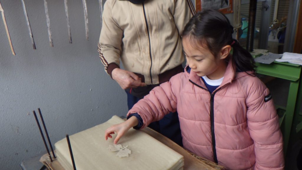 お友だちが作業している間は別のお部屋で和紙の折り紙をしたり、和紙を手でちぎったりして待ちました。和紙の強度が強くてびっくりしました。