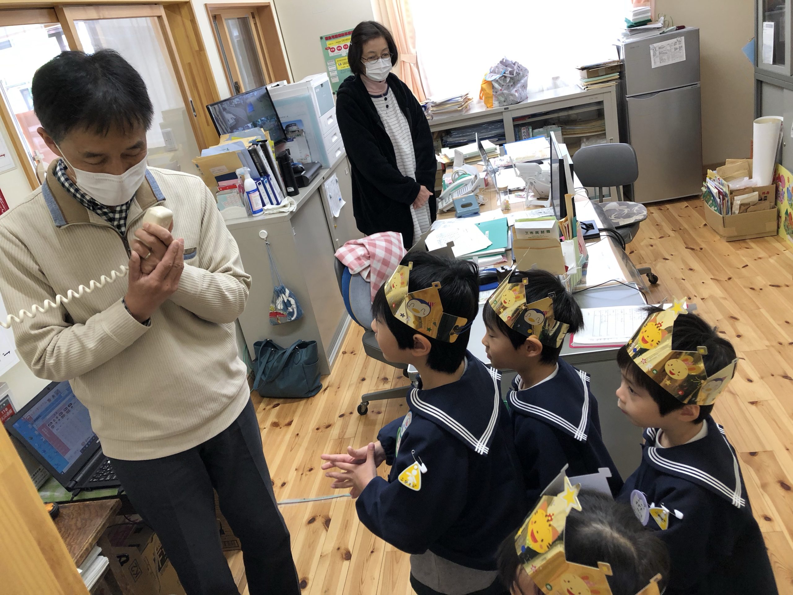 誕生会(以上児) 2021.10.27 以上児クラスでは7人の子どもたちが誕生日を迎えました。 コロナ感染予防の為今月も放送を使って行われました。 誕生日を迎えた子どもたちは自分の名前と何歳になりました!と、ちょっぴり緊張して伝える姿は微笑ましかったです。 その後、齋藤牧師からお祈りをしていただきました。 遊戯室で記念写真を撮った後、各クラスでお楽しみタイムをして楽しみました。