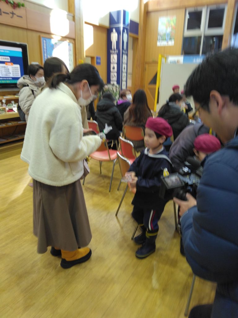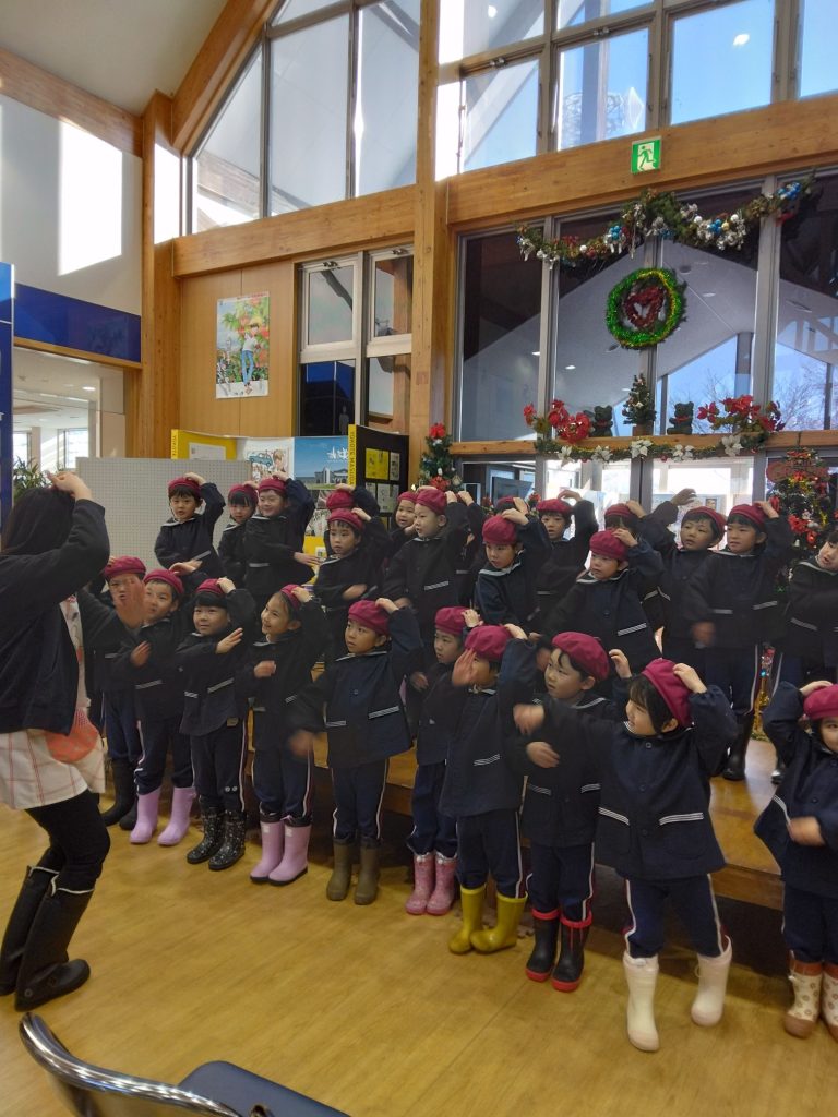 今日は、十文字町の道の駅でゆり組、すみれ組の子どもたちがクリスマスコンサートをしました。