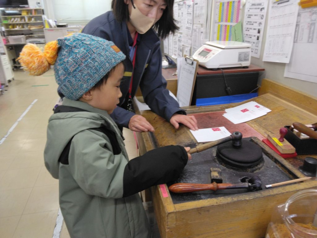 さて、郵便ポストに入れた手紙はポンポンと手際よくハンコを押染ます。簡単そうに見えましたが実際にしてみるとなかなか綺麗にハンコがつかず難しいと感じた子どもたちでした。