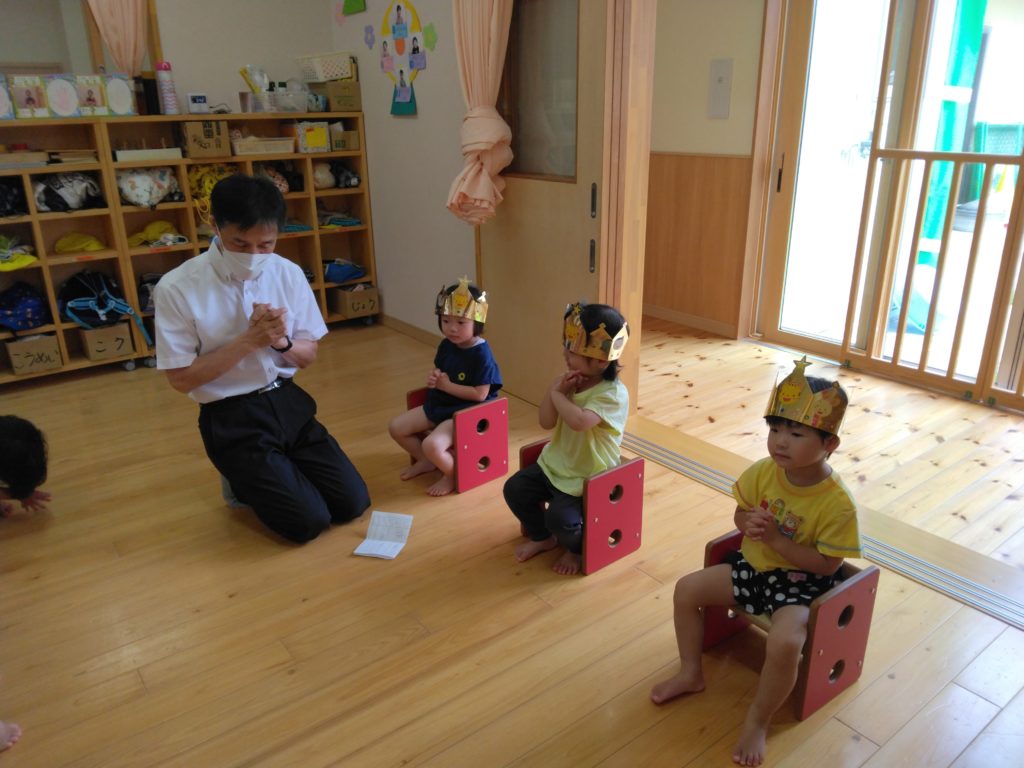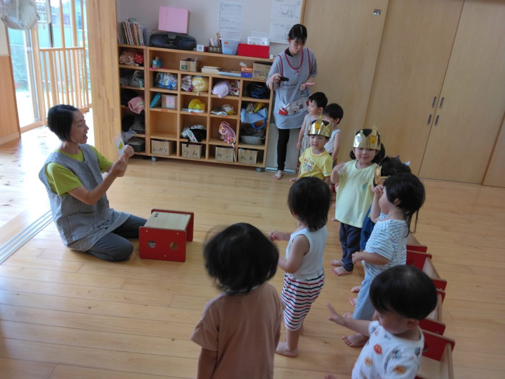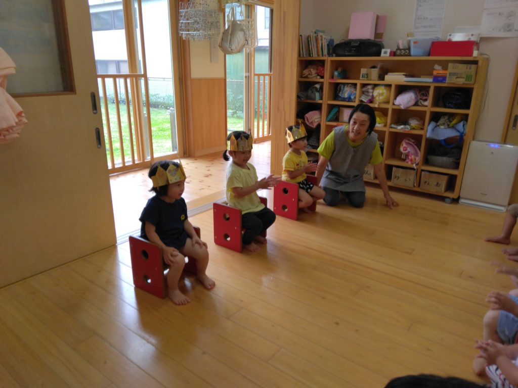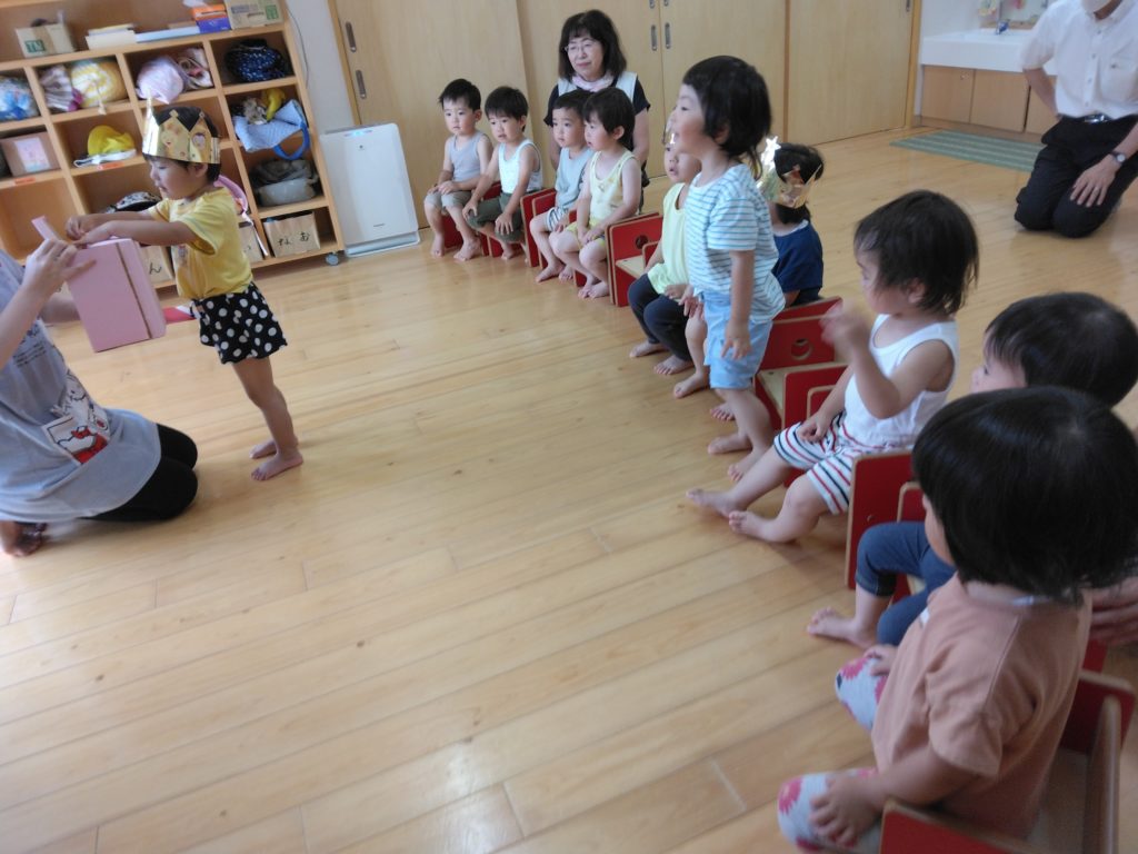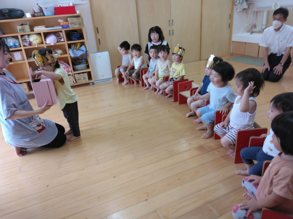 未満児クラスではひまわり組の子どもたち3人が誕生日を迎えました。