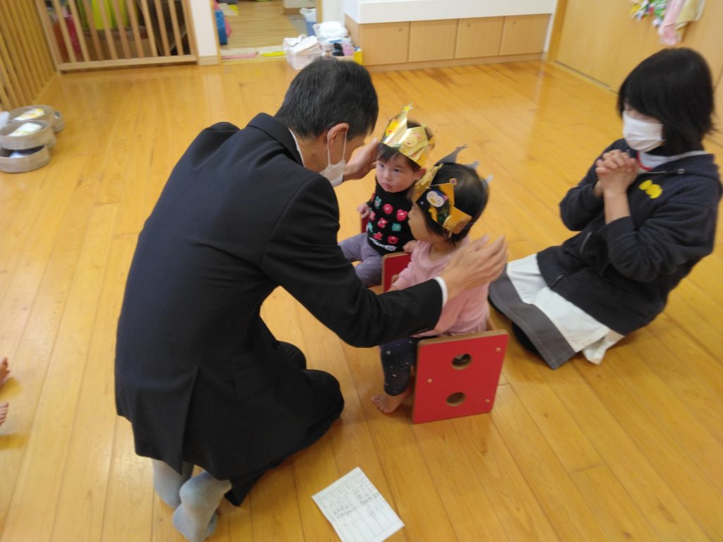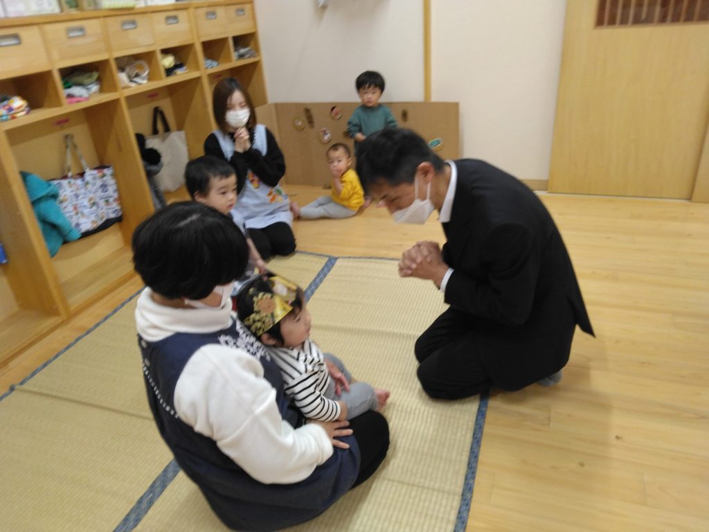 11月のお誕生会 2023.11.29 もも組、すずらん組のお部屋でもお誕生会が行われました。 斎藤牧師の祈りと一緒に小さな手を合わせてお祈りをしていました。 すずらん組ではお祈りの後に絵本のもりのおふろがお部屋に再現され、子どもたちはお風呂に入ってからだをゴシゴシして〝あーきもちいい〟とひと言!! 次々とお風呂に入っては大喜びの子どもたちでした。 寒い時にはやっぱりお風呂が気持ちいいですね!!