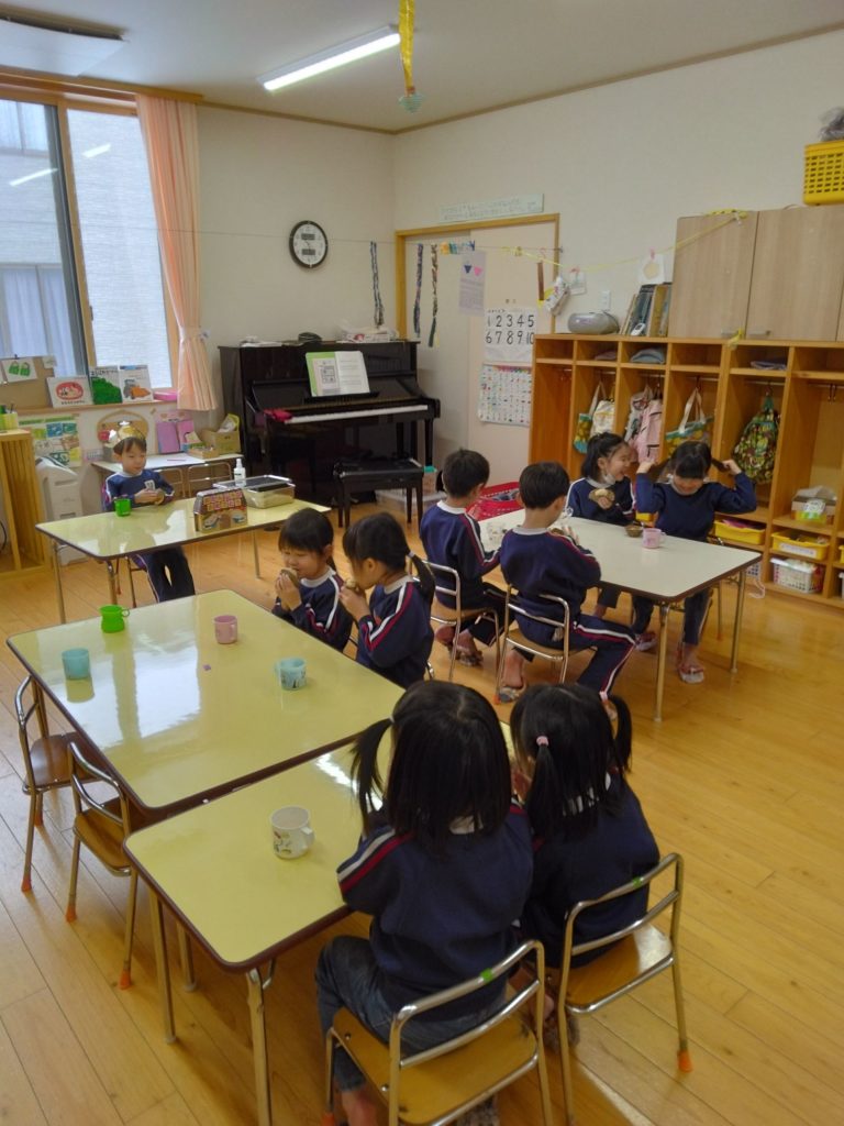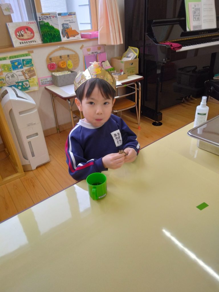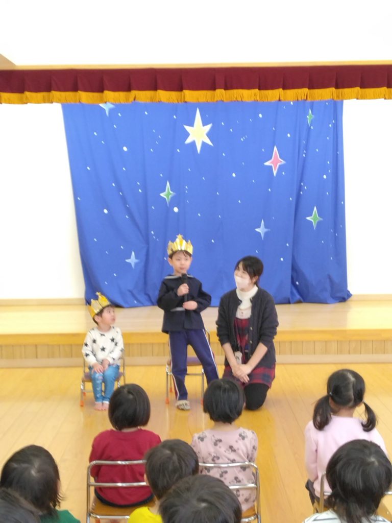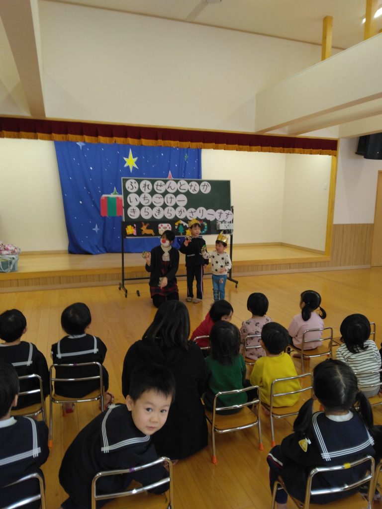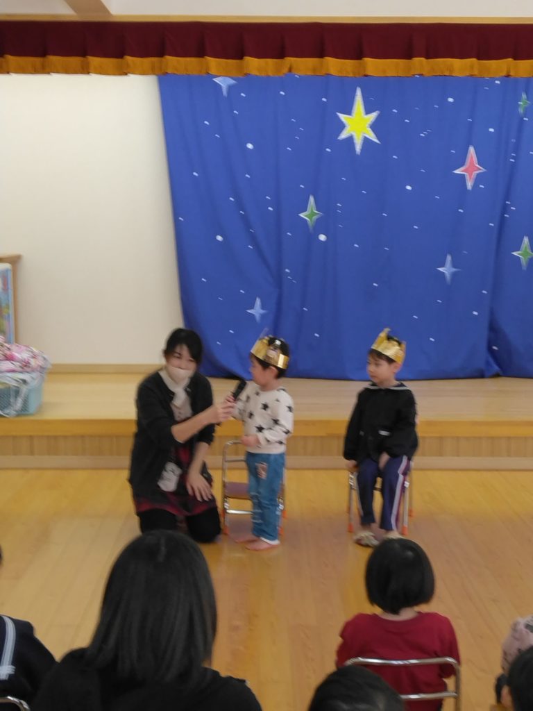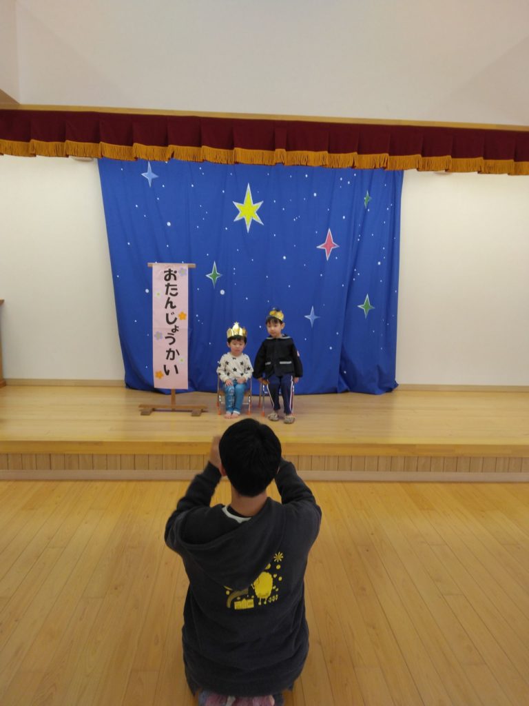 今月はゆり組1名、ひまわり組1名の誕生児でみんなでお祝いしました。誕生児はドキドキしながらもとっても嬉しそうに自己紹介をしてくれました。