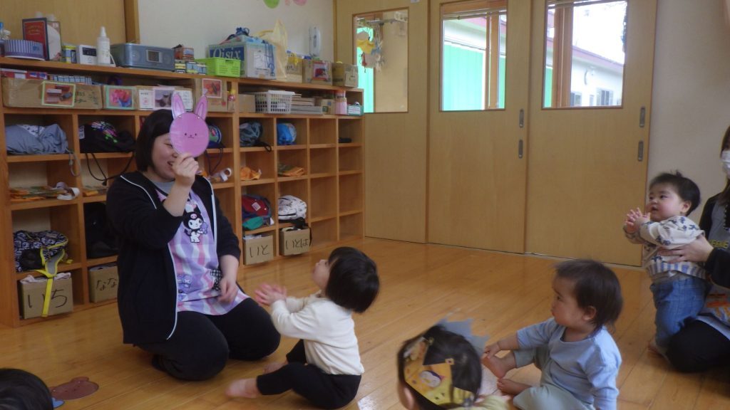 1歳児の今日のお楽しみタイムはまんまるちゃんのペープサート!