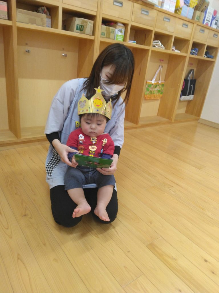5月誕生会(未満児) 2025.05.28 今日の誕生会はもも組のお友だち1名でした。 お友だちをお祝いしようとすずらん組、ひまわり組のお友だちも集まってくれました。 始めは恥ずかしそうにしていた誕生児のお友だちも誕生会が始まるとみんなの方に顔を向けてくれました。 冠も嬉しそうに被り、プレゼントを喜んでいる様子が見れました。