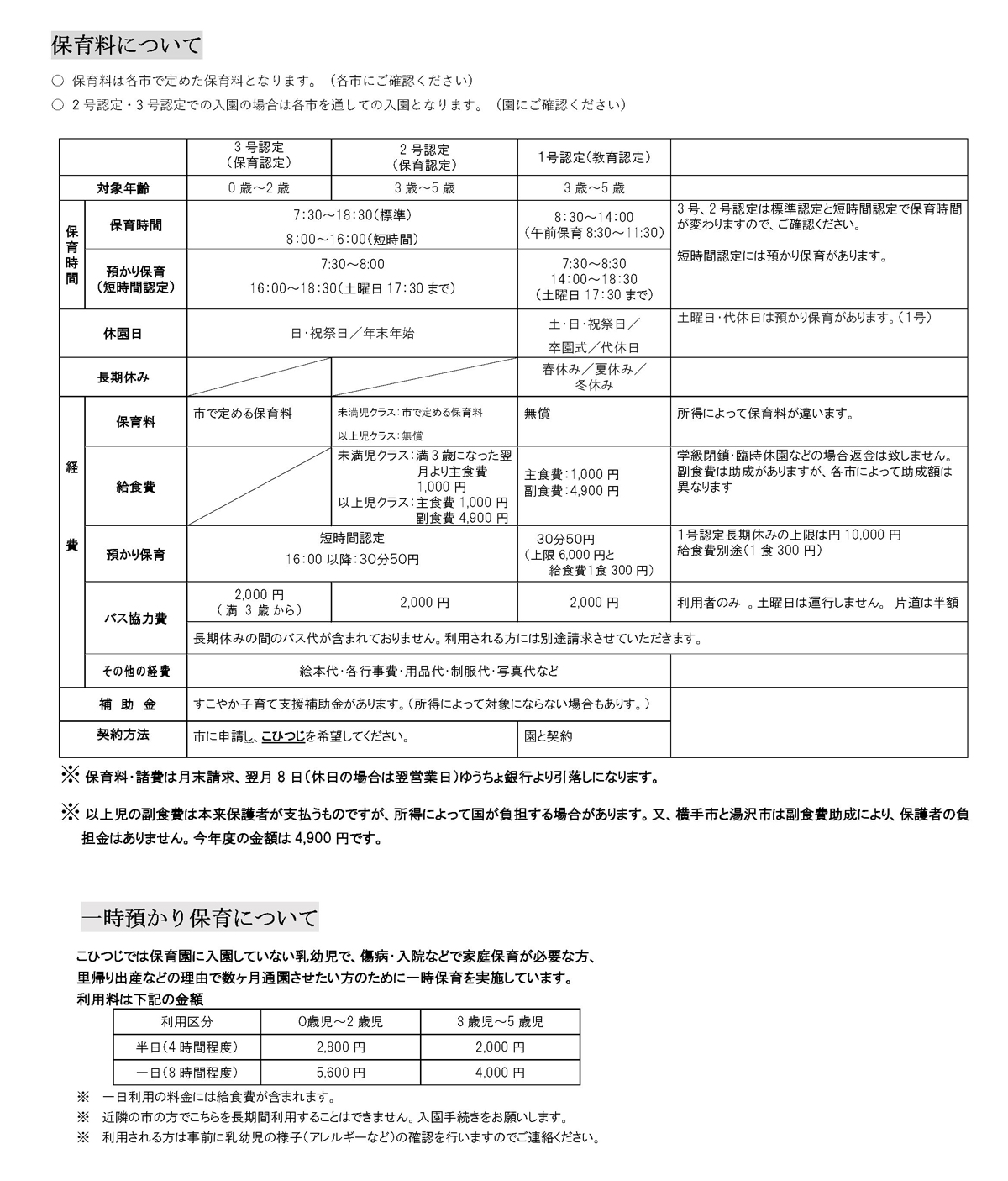 保育時間・保育料